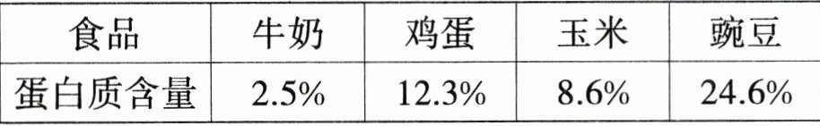 1. 四种食品的蛋白质含量如表所示。(4分)