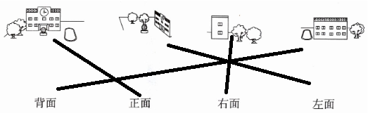 三、下面四张照片分别是从哪个方向拍摄的?连一连。