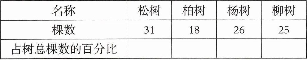 三、学校植物园中共有 100 棵树,下表是各种树的数目统计,算一算,完成下表。