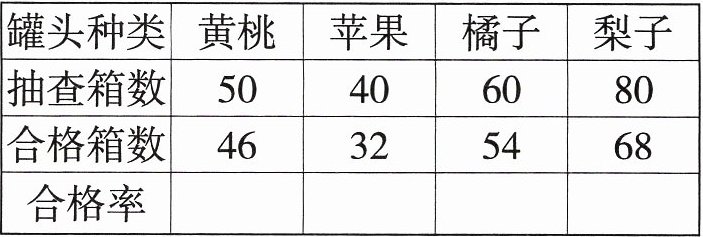 五、某市质量技术监督部门对某超市的几种水果罐头进行了质量抽查,结果如表所示。
