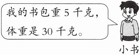 解:小书体重$30$千克,其负重上限为$30×15\% = 30×0.15 = 4.5$(千克)。