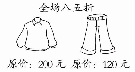 解:首先计算出上衣和裤子的原价总和:$200 + 120 = 320$(元)