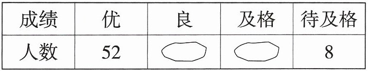 六年级总人数:8÷4%=200(人)获得“良”的人数:200×40%=80(人)获得“优”的百分比:52÷200=26%获得“及格”的百分比:1-40%-26%-4%=30%获得“及格”的人数:200×30%=60(人)