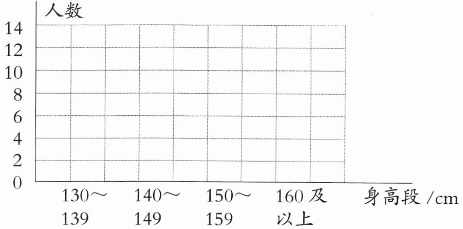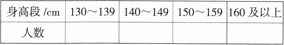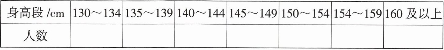 2. 将上表中的数据整理后填入下面的统计表,哪个身高段的人数最多?