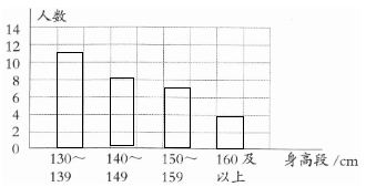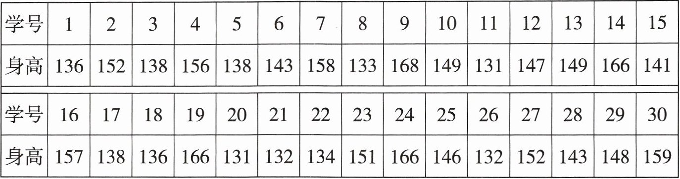 某次体检六(2)班全班同学的身高情况如表所示。(单位:cm)