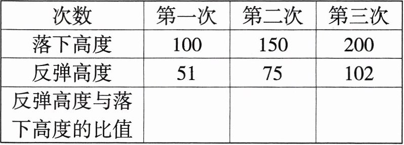 1. 根据每次的反弹高度与落下高度把表格填完整。
