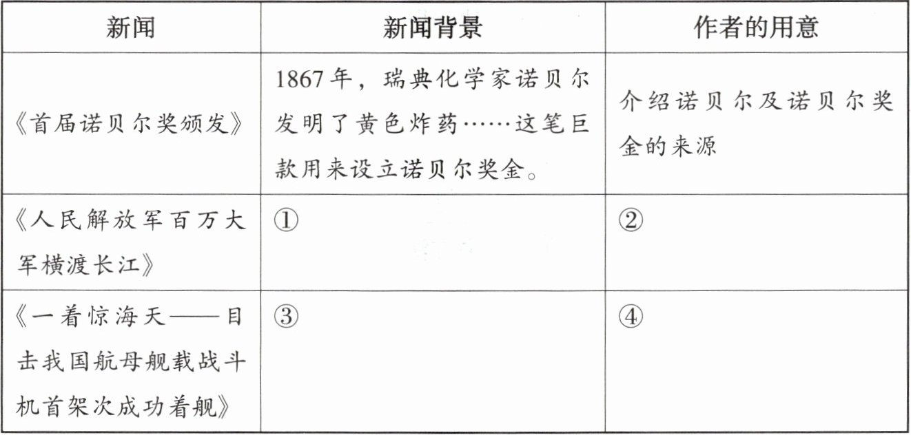 3. 采访有时还需要查阅一些背景资料,用以阐释新闻的背景、显示新闻的意义或进行一些知识性的解释。请你完成下面的表格。