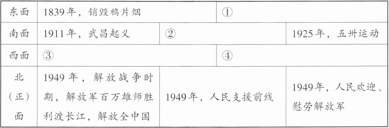 ①1851年,金田起义 ②1919年,五四爱国运动 ③1927年,八一南昌起义 ④抗日战争时期,抗日敌后游击战 ⑤A A路线可以帮助学生更好地了解百年以来中国革命的历史。