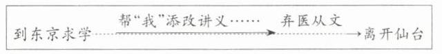 解说:《藤野先生》一文以与藤野先生交往为明线,用实线标出;还设置了交代自身处境的暗线,用虚线标出。以双线并行的方式来突出藤野先生对鲁迅人生的影响。
