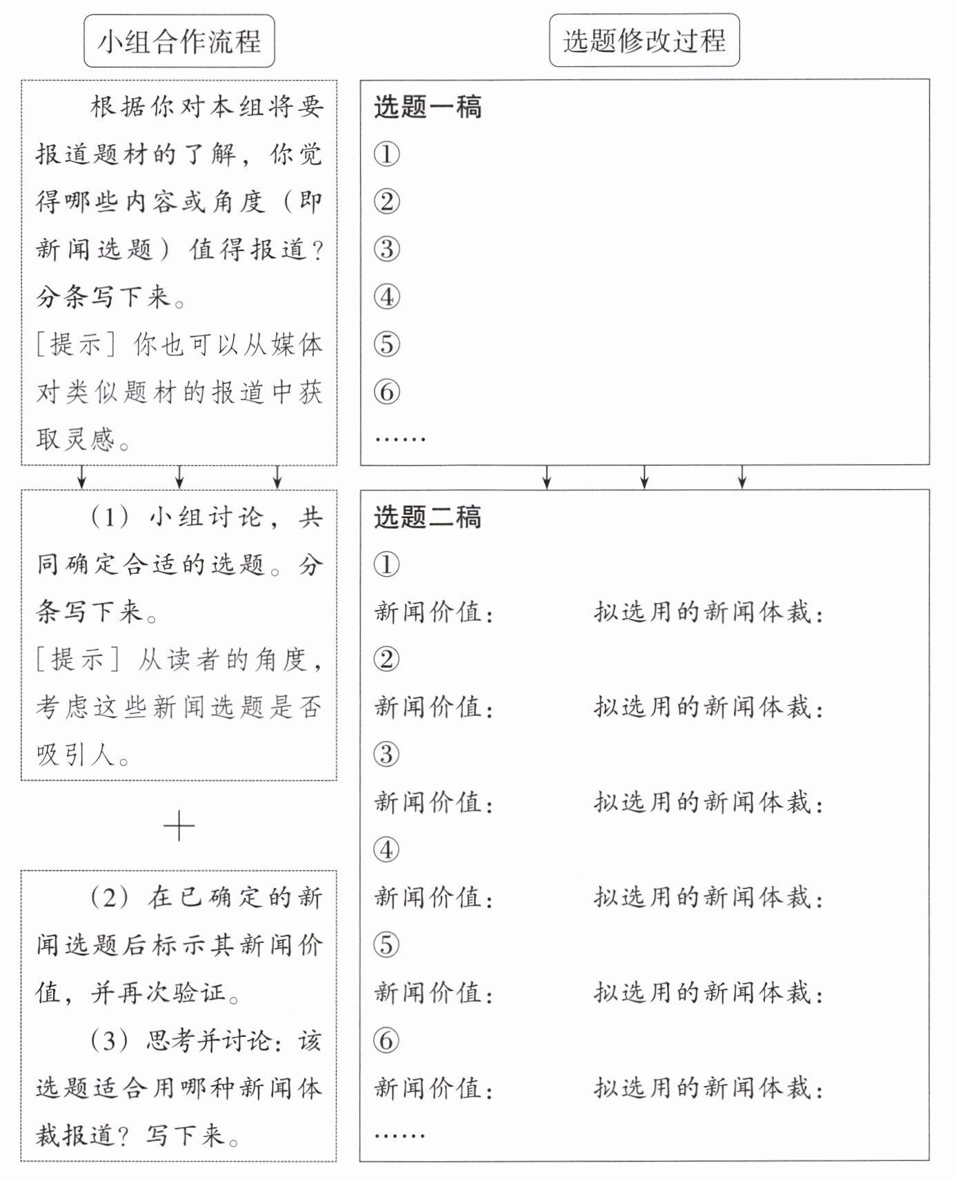 3. 基于以上学习,请与小组同学一同商议并确定将要报道的题材。