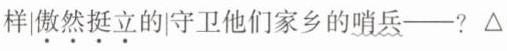 (朗诵“哨兵”时模仿哨兵站姿,人略前倾)