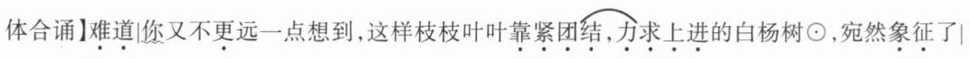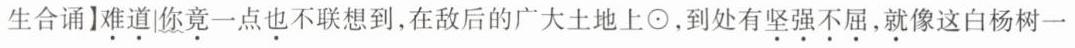 (朗诵“精神和意志”时站在左边和右边的同学分别伸出左手和右手,往前向上45°举起) ⑤C 最后一句设计为全体合诵,此处是作者借白杨树表达对民族精神礼赞之情的最高潮,同时举起手来传情达意,是一种形式上的礼赞。