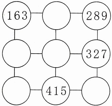 在$◯$里填上合适的数,使每一横行、每一竖行上的三个数相加的和都得785。