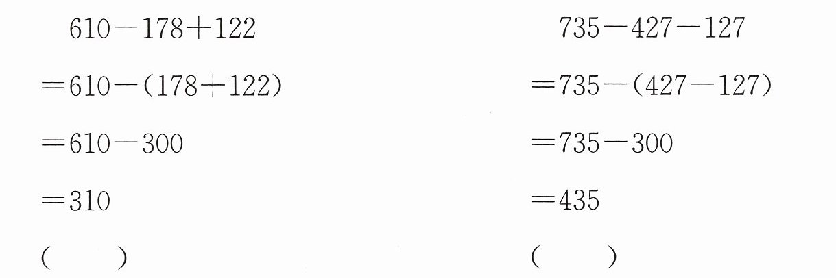 × 改正:610-178+122=432+122=554 × 改正:735-427-127=308-127=181