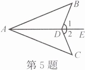 5. 如图,已知点 A,D,E 在同一条直线上,且∠1 = ∠2,DB = DC。求证:AB = AC。(填空)