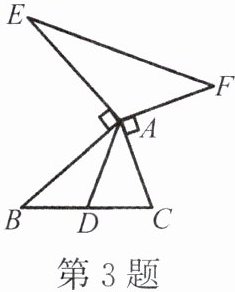3. 如图,已知 AD 是△ABC 的中线,AE⊥AB,AE = AB,AF⊥AC,AF = AC,连结 EF。试猜想线段 AD 与 EF 之间的数量及位置关系,并给予证明。
