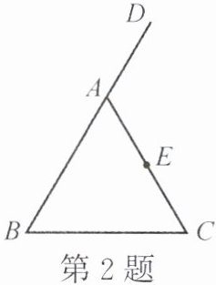 2. 如图,在 $ \triangle ABC $ 中,$ \angle B = \angle C $,D 是 BA 延长线上的一点,E 是 AC 的中点。