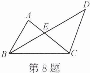 8. 如图,∠BCD= 110°,∠CBD= 28°,∠A= 60°。求:
