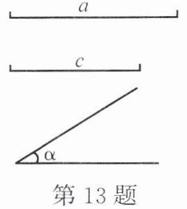 13. 已知线段$a$,$c$,$\angle\alpha$,用直尺和圆规作$\triangle ABC$,使$BC = a$,$AB = c$,$\angle ABC = \angle\alpha$。