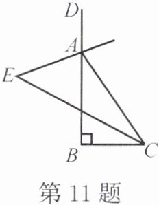 11. 如图,在$\triangle ABC$中,$\angle B = 90^{\circ}$,分别作$\angle ACB与\angle DAC$的平分线,且两条角平分线所在的直线交于点$E$,则$\angle E = $