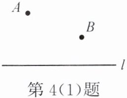 4. 如图,在一条河(直线l)的同侧有两个村庄(点A和点B),现计划在河岸上修建码头。请你根据要求分别画出示意图,并简要说明。