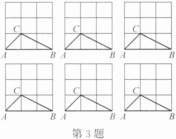 3. 在3×3的方格图中,有格点三角形ABC和DEF,且△ABC和△DEF关于某直线成轴对称。请在下面各图中画出所有满足条件的△DEF。