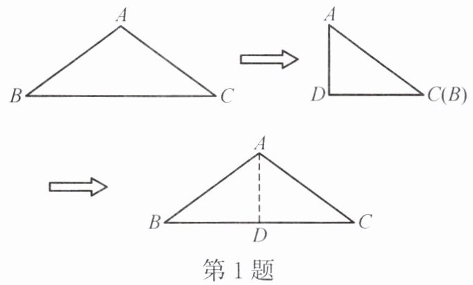 操作:把等腰三角形按如图所示的方式对折后再复原。