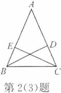 。(2) 若等腰三角形的一个顶角为 $ 70^{\circ} $,则底角为