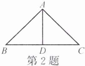 2. 如图,在等腰三角形 $ ABC $ 中,$ AB = AC $,点 $ D $ 在 $ BC $ 上,连结 $ AD $。请证明下列结论: