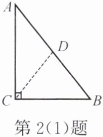 (2) 如图,在 $ Rt \triangle ABC $ 中, $ \angle ACB = 90^{\circ} $, $ AB = 10 $, $ D $ 是斜边的中点,连结 $ CD $。若 $ \angle ACD = 25^{\circ} $,则 $ CD = $