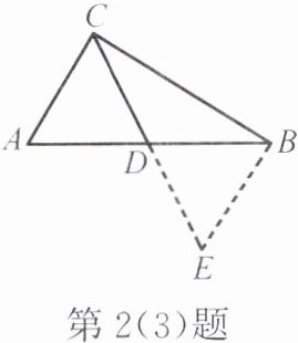 (3)如图,$CD是\triangle ABC的边AB$上的中线,延长$CD至点E$,使$DE = CD$,连结$BE$,请你证明$\triangle ABC$是直角三角形。