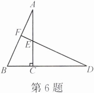 6. 如图,在$\triangle ABC$中,$\angle ACB = 90^{\circ}$,$D是BC$延长线上一点,点$F在边AB$上,$DF交AC于点E$,$\angle A= \angle D$。找一找,图中有多少个直角三角形?与$\angle A$互余的角有哪些?请说明理由。