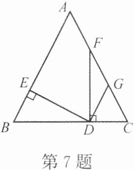 7. 如图,在$\triangle ABC$中,$AB = AC$,$D是BC$上一点,$DE\perp AB于点E$,$FD\perp BC于点D$,$G是FC$的中点,连结$GD$。求证:$GD\perp DE$。