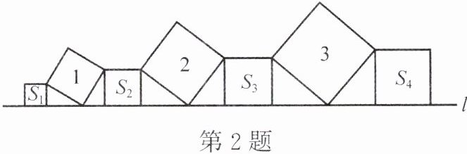 2. 如图,在直线 $l$ 上依次摆放着七个正方形,已知斜放置的三个正方形的面积分别是 $1$,$2$,$3$,正放置的四个正方形的面积依次是 $S_{1}$,$S_{2}$,$S_{3}$,$S_{4}$,则 $S_{2} + S_{3} = $