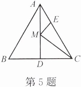 5. 如图,等边三角形 $ABC$ 的边长为 6,$AD$ 是边 $BC$ 上的中线,$M$ 是 $AD$ 上的一动点,$E$ 是边 $AC$ 上的一点。若 $AE = 2$,则 $EM + CM$ 的最小值是多少?