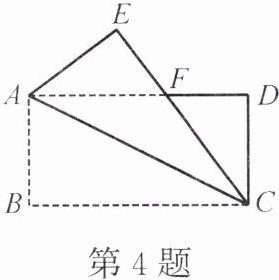 4. 如图,将长方形纸片 $ABCD$ 沿对角线 $AC$ 折叠,使点 $B$ 落在点 $E$ 处,$AB = 4$,$BC = 8$。