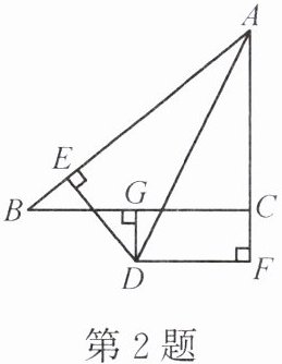 2. 如图,在 $ \triangle ABC $ 中,边 $ BC $ 的垂直平分线与 $ \angle BAC $ 的平分线交于点 $ D $,$ DE \perp AB $,$ DF \perp AC $,垂足分别为点 $ E $,$ F $。求证:$ BE = CF $。