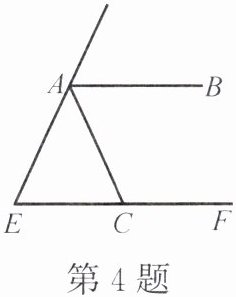 4. 如图,若$AB// EF,AE = AC,\angle E = 65^{\circ}$,则$\angle CAB$的度数为(
