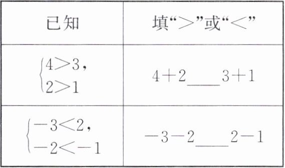 (1)> < (2)<,结论:a+c<b+d。理由:因为a<b,所以a+c<b+c。因为c<d,所以b+c<b+d。所以a+c<b+d。故答案为“<”