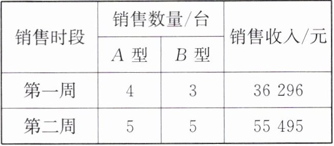 4. 某商场销售进价分别为 $2599$ 元、$7300$ 元的 $A$,$B$ 两种型号的空调,下表是近两周的销售情况: