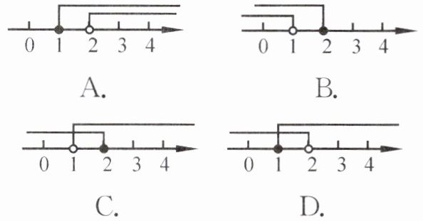 3. 不等式组$\begin{cases}x + 1 \geq 2,\\4x - 8 < 0\end{cases} $的解在数轴上表示正确的是(