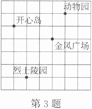 3. 某市四个旅游景点的位置如图所示(图中每个小正方形的边长都为$1$个单位长度),若金凤广场是平面直角坐标系的原点,则其余三个景点的坐标是:动物园