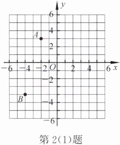 (2)A'(-2,-3),B'(4,-4) (3)横坐标相同,纵坐标互为相反数 (4)横坐标互为相反数,纵坐标相同
