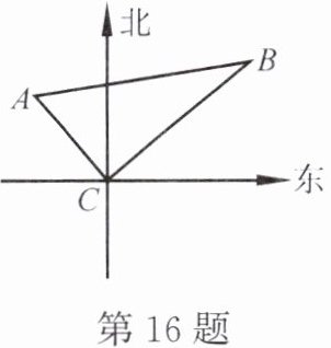 16. 如图,从上午9时到下午1时,轮船从$A处沿直线航行到B$处。在$A处测得灯塔在轮船南偏东40^{\circ}$方向20海里处,在$B处测得灯塔在轮船南偏西50^{\circ}方向20\sqrt{3}$海里处,求轮船航行的平均速度。