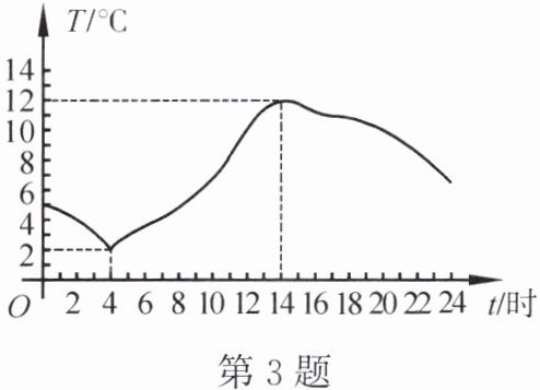 3. 如图所示是某地一天中气温 $ T(^{\circ}C) $随时间 $ t $(时)变化的图象,请思考: