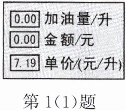 1. 如图,某种型号汽油的单价为7.19元/升,请思考: