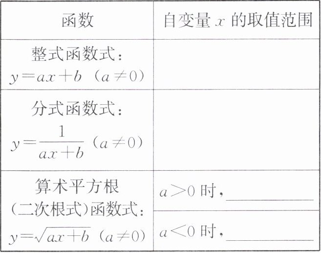 (1)任意实数 x≠-b/a x≥-b/a x≤-b/a (2)x≠2 x≥2