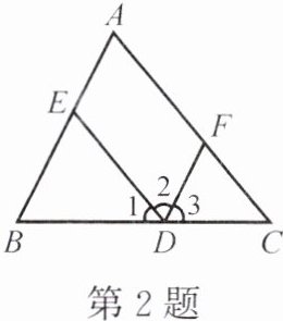 (已知),所以$\angle 2+\angle AED = 180^{\circ}$(两直线平行,同旁内角互补