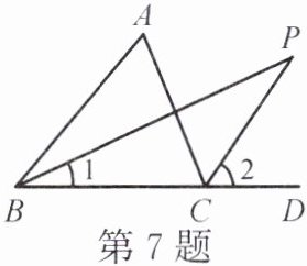 2. 如图,P是△ABC内一点,连结BP并延长,交AC于点D,连结PC,则∠1,∠2,∠A的大小关系是(