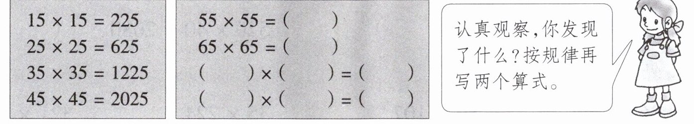 1. 找出下面左边各题的计算规律,再按规律写出右边各题的结果。
